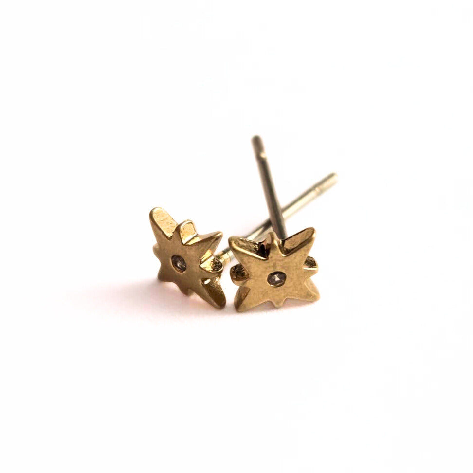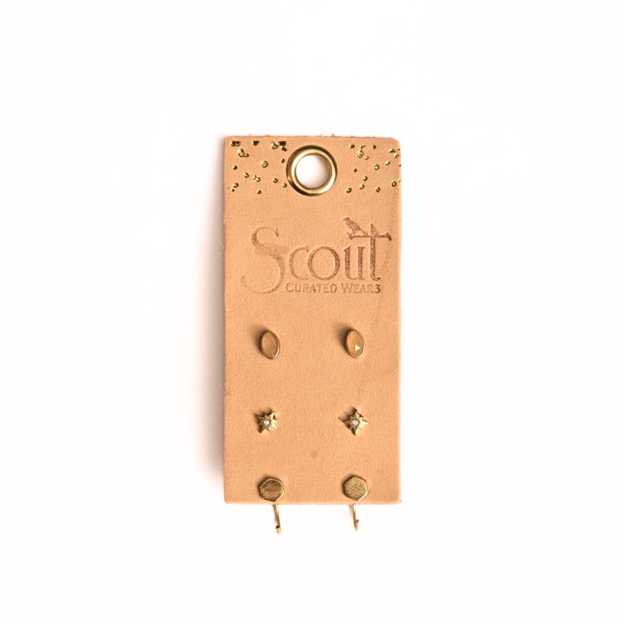 Stud Trio featuring sunstone studs, starburst studs, and gold huggers by Scout Curated Wears.